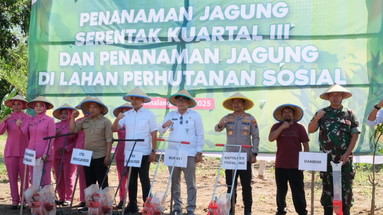 Bharindo, Pemalang Jateng – Sebagai komitmen dalam mewujudkan program ketahanan pangan, seluas 2,5 hektare lahan perhutanan sosial di Kabupaten Pemalang ditanami jagung pada penanaman jagung secara serentak kuartal III yang dilaksanakan di Desa Gongseng Kecamatan Randudongkal, Rabu (9/7/2025).