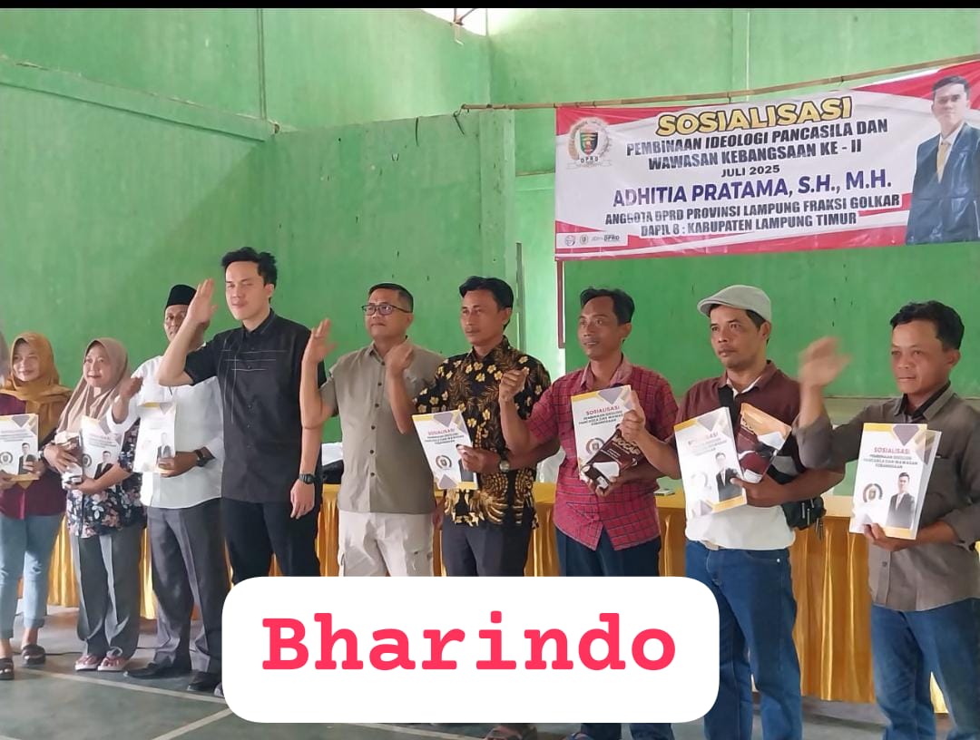 Bharindo Lampung Timur,- Anggota DPRD Lampung,Adhitia Pratama menggelar Pembinaan Idieologi Pancasila dan Wawasan Kebangsaan di Desa Banarjoyo,Minggu (20/7/2025).