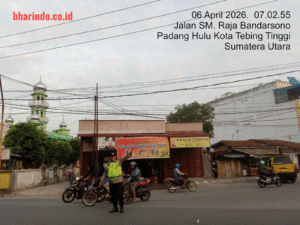 Tebing Tinggi, bharindo.co.id – Personel Polsek Padang Hulu Polres Tebing Tinggi Aiptu Assyabani melaksanakan kegiatan pos padat pagi dengan melakukan pengaturan arus lalu lintas di Jalan SM. Raja – Simpang Bandarsono Kota Tebing Tinggi, Senin (6/4/2026).