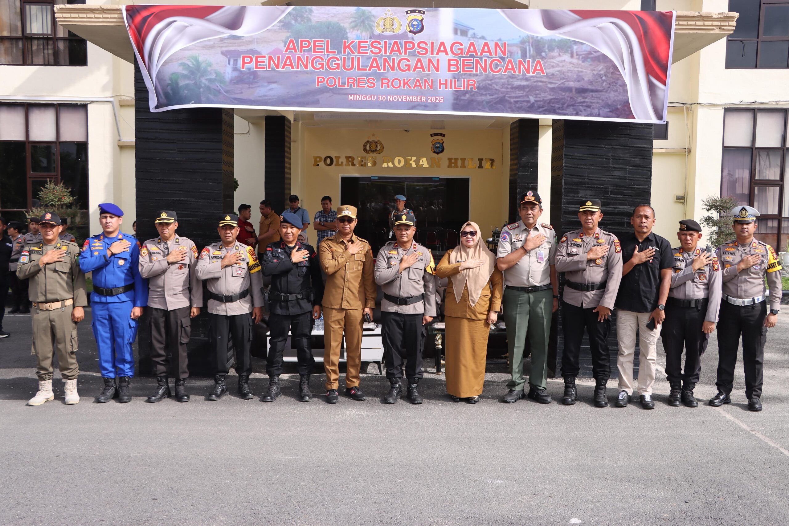 bharindo.co.id Rohil,-Β Polres Rokan Hilir bersama Pemerintah Daerah dan lintas instansi melaksanakan Apel Kesiapsiagaan Penanggulangan Bencana Tingkat Kabupaten Rokan Hilir Tahun 2025, pada Minggu (30/11/2025) sekitar pukul 08.30 WIB, bertempat di Halaman Mapolres Rokan Hilir, Jalan Lintas RiauβSumut Km. 167, Kelurahan Banjar XII, Kecamatan Tanah Putih.