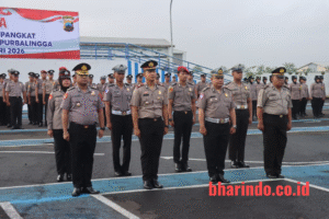 bharindo.co.id Purbalingga,- Polres Purbalingga menggelar upacara laporan kenaikan pangkat personel periode 1 Januari 2026. Kegiatan digelar di halaman Satuan Penyelenggara Administrasi SIM (Satpas), Rabu (31/12/2025).