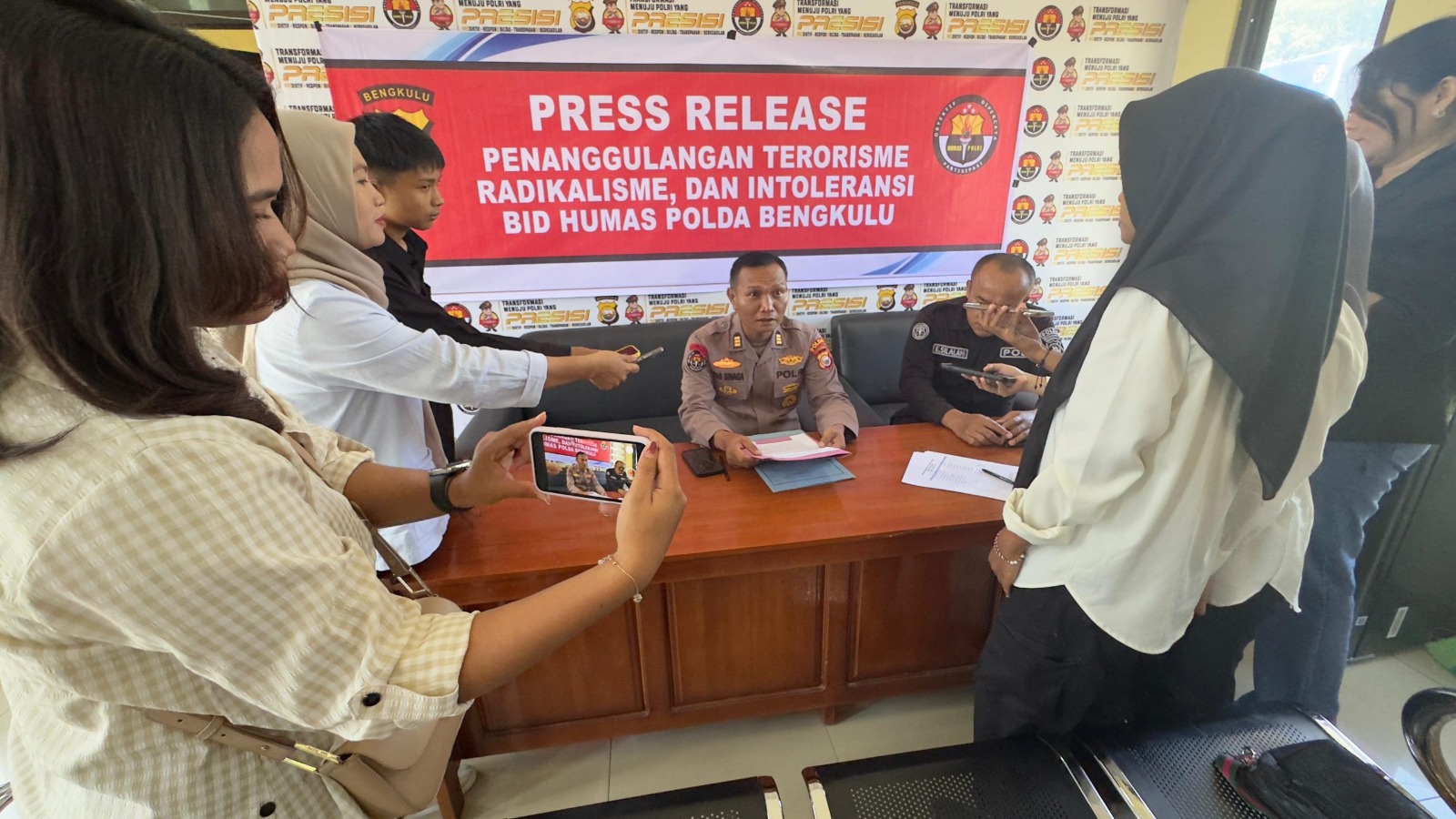 bharindo.co.id Bengkulu,– Dalam rangka memperkuat upaya pencegahan terhadap ancaman terorisme, radikalisme, dan intoleransi, Bidang Hubungan Masyarakat (Bidhumas) Polda Bengkulu menggelar kegiatan press release bersama insan pers, Selasa (14/10/2025), bertempat di Aula Bidhumas Polda Bengkulu.