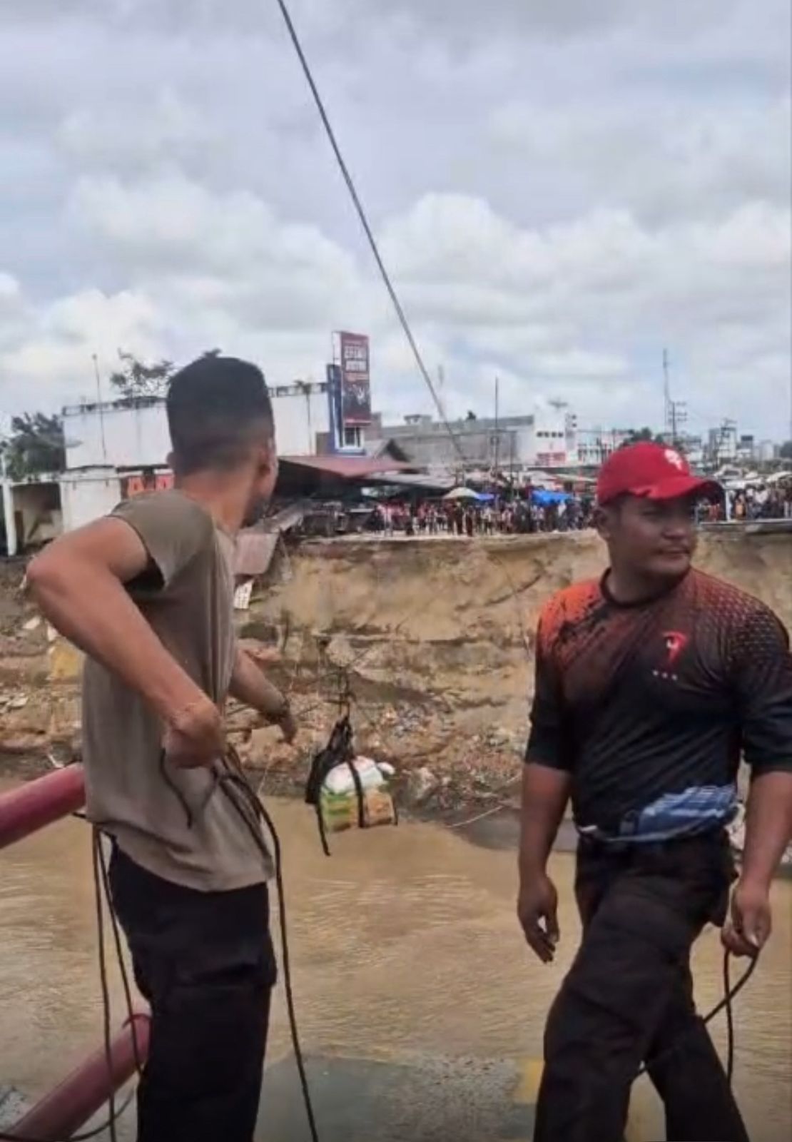 Operasi yang dimulai pukul 16.00 WIB itu fokus pada pemulihan akses sementara bagi warga. Personel Brimob melakukan pemasangan tali sling pada jembatan yang putus guna memperkuat jalur penyeberangan darurat yang kini menjadi satu-satunya akses warga untuk mobilitas dan distribusi kebutuhan harian.