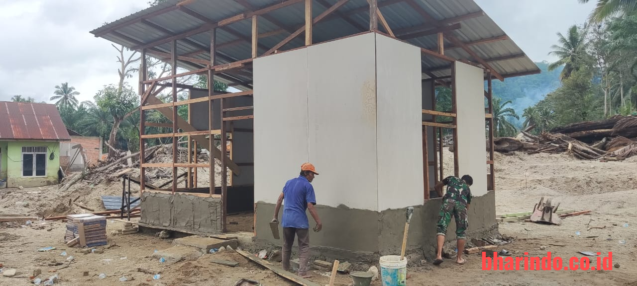 bharindo.co.id Tapanuli Selatan,- Kepedulian Polri terhadap masyarakat terdampak bencana kembali diwujudkan secara nyata. Personel Satuan Brimob Batalyon C Polda Sumatera Utara bersama TNI dan masyarakat setempat melanjutkan pembangunan hunian sementara bagi korban banjir di Desa Tolang Julu, Kecamatan Sayur Matinggi, Kabupaten Tapanuli Selatan, Minggu (28/12/2025).