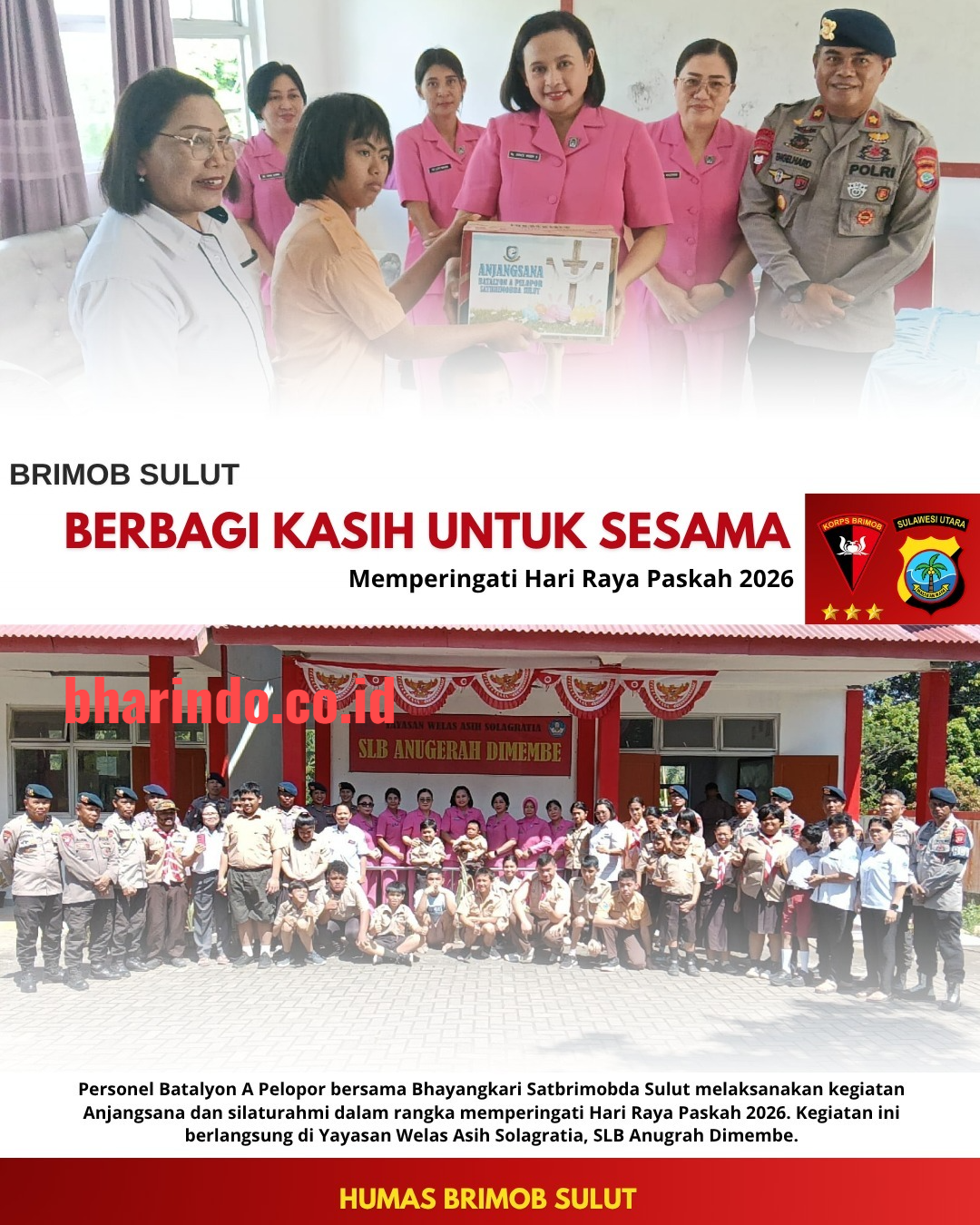 Minahasa Utara, bharindo.co.id – Semangat kebersamaan dan kepedulian sosial ditunjukkan oleh jajaran Brimob Sulawesi Utara dalam momentum peringatan Hari Raya Paskah 2026.