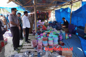 bharindo.co.id Mamasa, Senin (26/01/2026) — Bupati Mamasa, Welem Sambolangi, didampingi Sekretaris Daerah Kabupaten Mamasa H. Muhammad Syukur, unsur Forum Koordinasi Pimpinan Daerah (Forkopimda), serta sejumlah Kepala Organisasi Perangkat Daerah (OPD) terkait, melaksanakan inspeksi langsung ke pasar sementara Kota Mamasa. Kunjungan ini merupakan bagian dari fungsi pengawasan pemerintah daerah terhadap stabilitas harga kebutuhan pokok, ketersediaan stok pangan, serta kondisi sosial-ekonomi para pedagang.