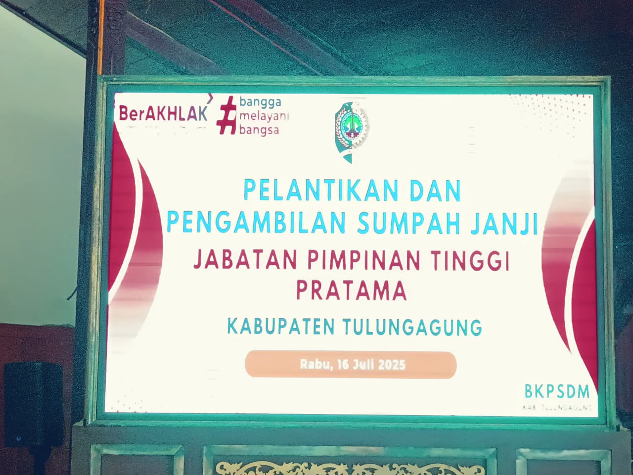 Bharindo Tulungagung,– Rabu, 16 Juli 2025 – Bertempat di Pendopo Kongas Arum Kusumaning Bongso pada pukul 09.00 WIB, Bupati Tulungagung melantik 17 pejabat eselon II dalam rotasi jabatan strategis di lingkungan Pemerintah Kabupaten Tulungagung. Pelantikan yang berlangsung khidmat ini justru meninggalkan sejumlah tanda tanya publik, terutama karena tidak dihadiri oleh Wakil Bupati.