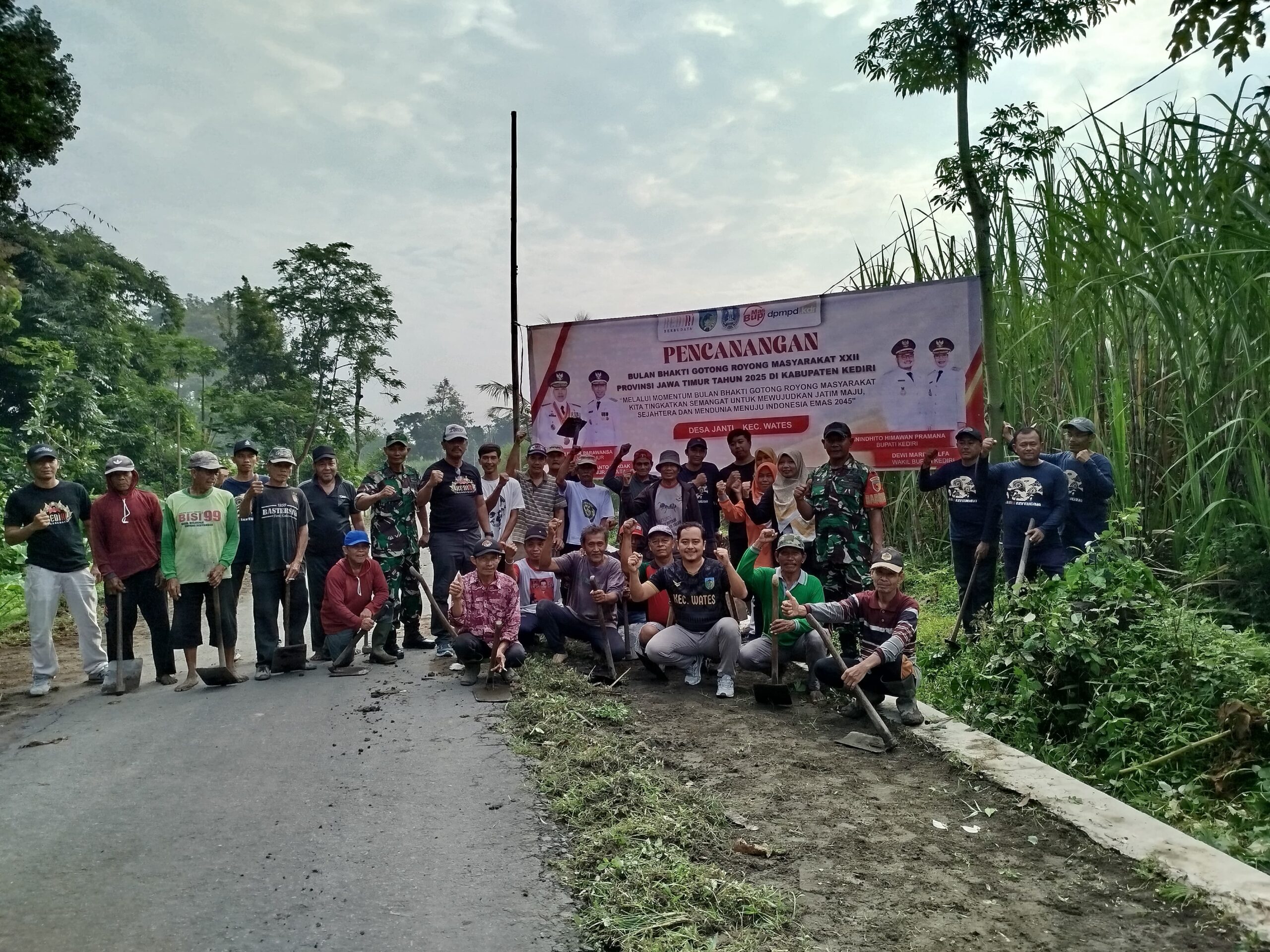 Bharindo Wates, Kediri - Warga Desa Pojok, Kecamatan Wates, Kabupaten Kediri, menggelar kegiatan gotong royong dalam bentuk kerja bakti membersihkan…