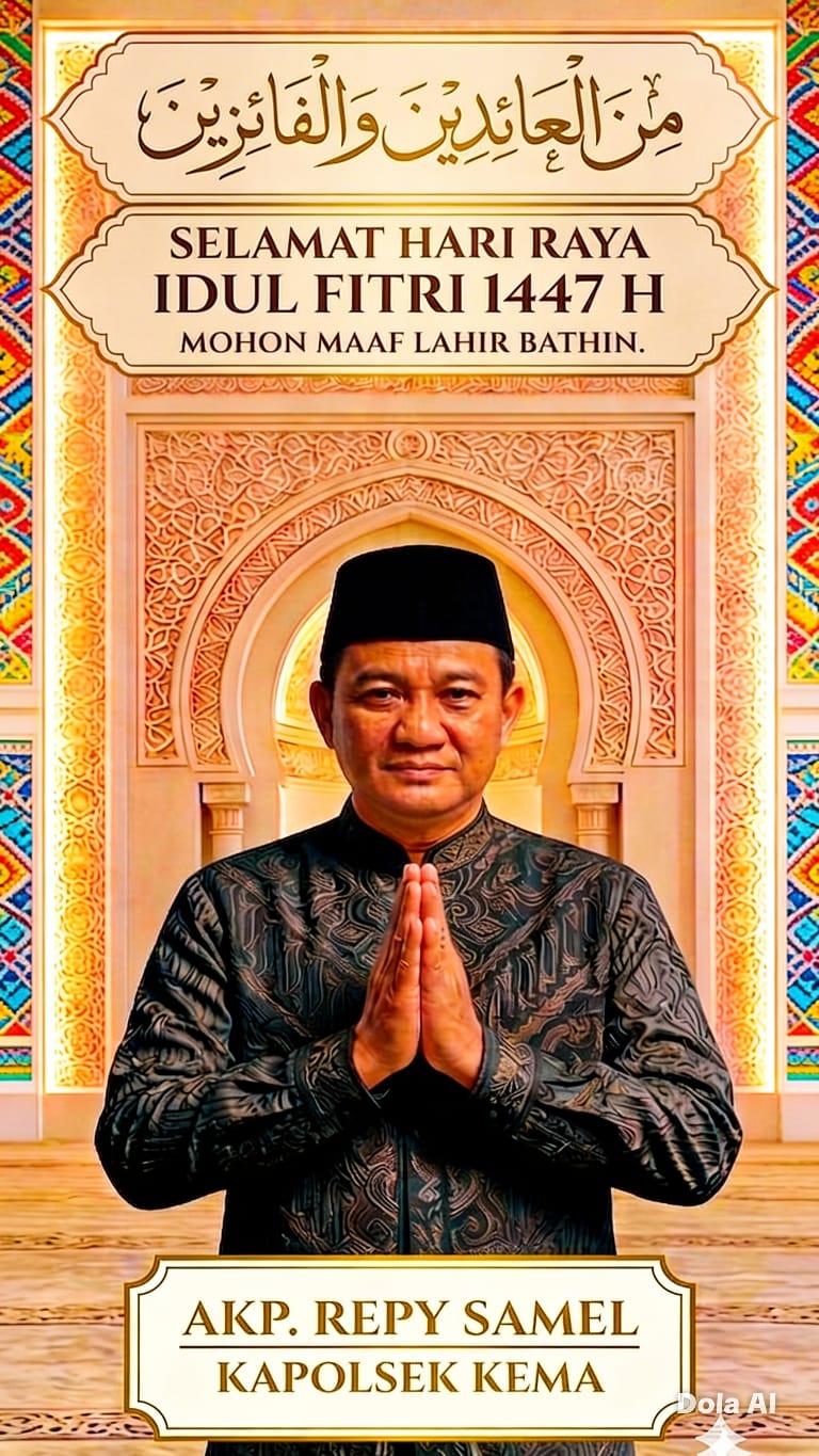 Minut, bharindo.co.id - Menyambut perayaan Idul fitri 1447 Hijriah, Kapolsek Kema AKP.Repy Samel menyampaikan ucapan selamat kepada seluruh umat muslim…