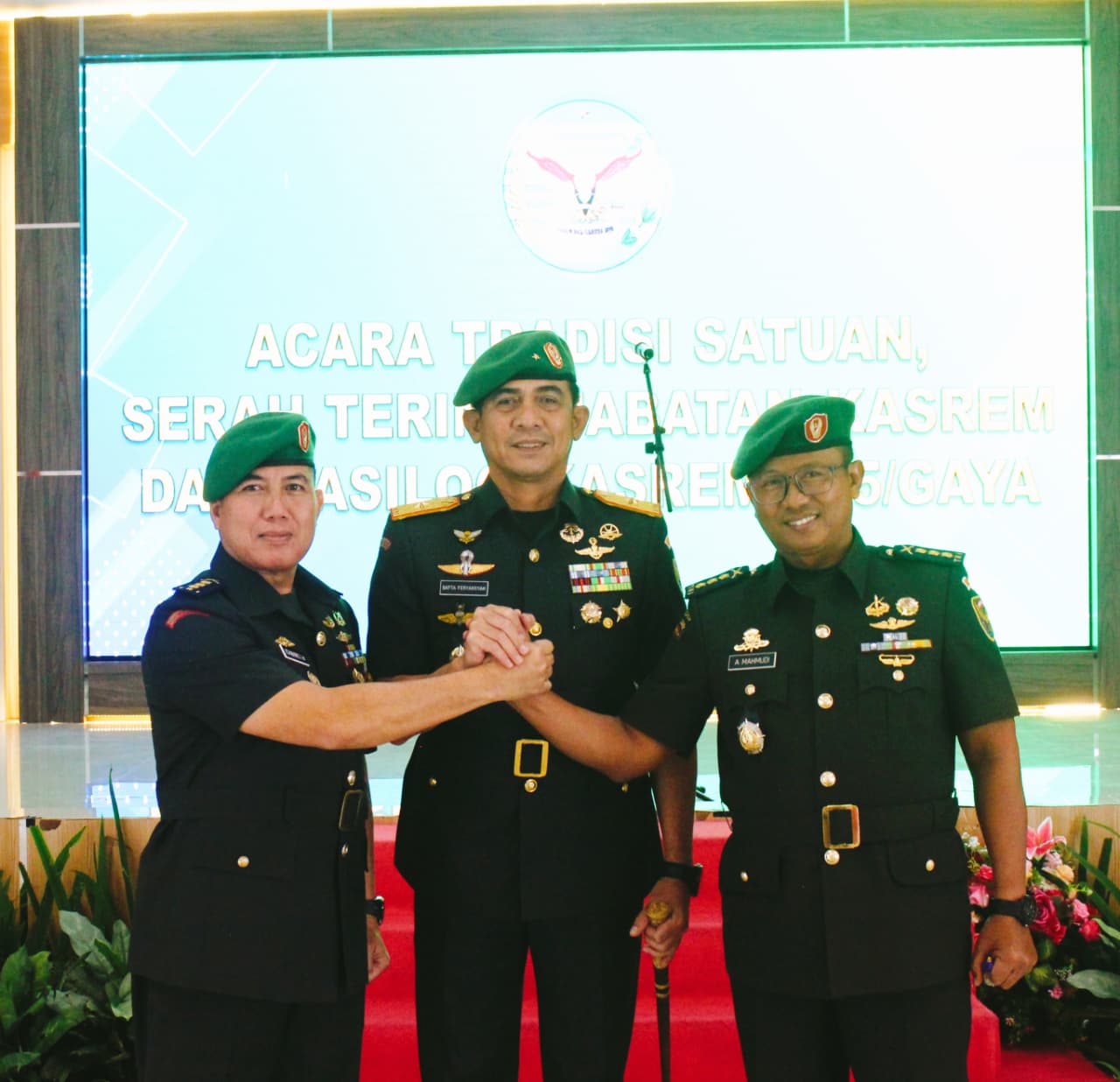 Bharindo kepulauan Bangka Belitung.Pangkalpinang – Danrem 045/Gaya Brigjen TNI Safta Feryansyah, S.E.,S.I.P.,M.Han., memimpin serah terima jabatan Kepala Staf Korem (Kasrem) 045/Gaya dan Kasi Logistik (Kasilog) Kasrem 045/Gaya serta Tradisi Satuan yang dilaksanakan di Aula Makorem 045/Gaya, Selasa (09/09/2025).