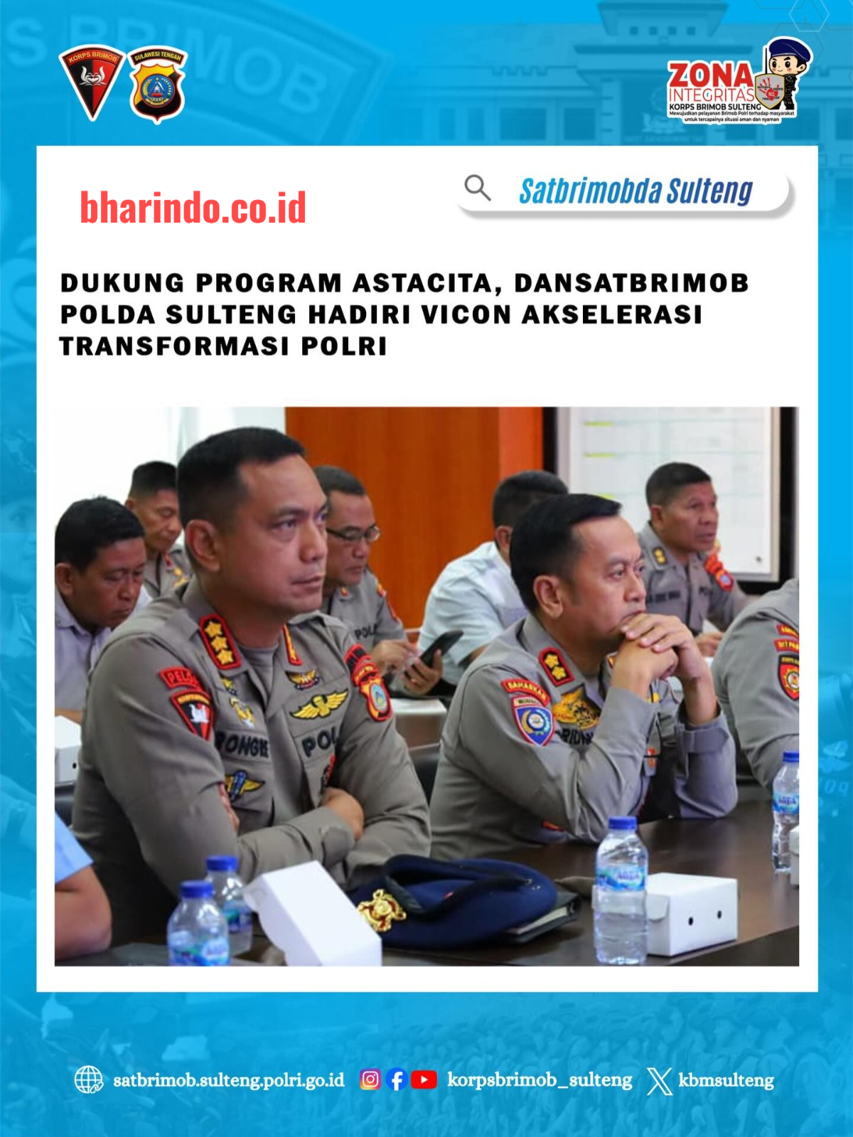 Sulawesi Tengah, bharindo.co.id – Komandan Satuan Brimob Polda Sulawesi Tengah, Kurniawan Tandi Rongre, menghadiri kegiatan Video Conference (Vicon) tingkat Mabes Polri yang dipimpin langsung oleh Wakapolri, Kamis (09/04).