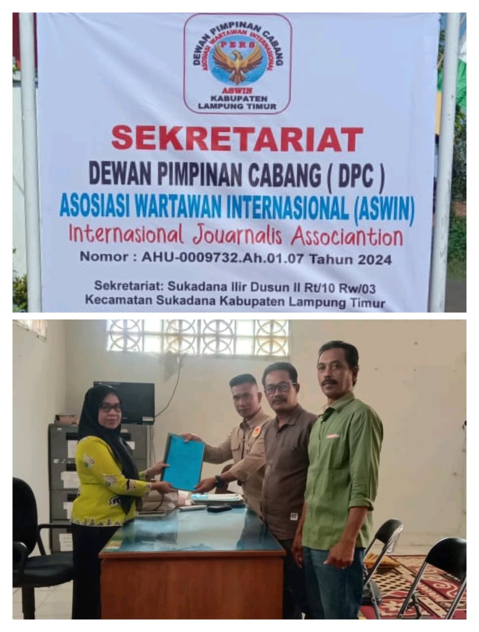 Bharindo Lampung Timur,- Dewan Pimpinan Cabang (DPC) ASWIN (Asosiasi Wartawan Internasional) Kabupaten Lampung Timur kini resmi terdaftar di Badan Kesatuan Bangsa dan Politik (Kesbangpol) Kabupaten Lampung Timur.