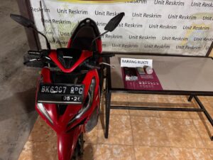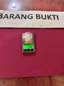 Dari pengungkapan ini, petugas berhasil menyita barang bukti berupa tujuh bungkus plastik klip transparan berisi sabu dengan total berat bruto 1,88 gram, lima bungkus plastik klip kecil kosong, satu lembar uang pecahan Rp2.000,-, satu plastik klip besar kosong, dua unit handphone, satu buah pipet kecil berbentuk sekop, tiga buah pipet kecil, satu buah kaca pirex bekas bakar, satu kotak kecil warna biru muda, satu bola lampu warna putih, serta satu unit sepeda motor Honda Vario warna merah dengan nomor polisi BK 6367 RPG.