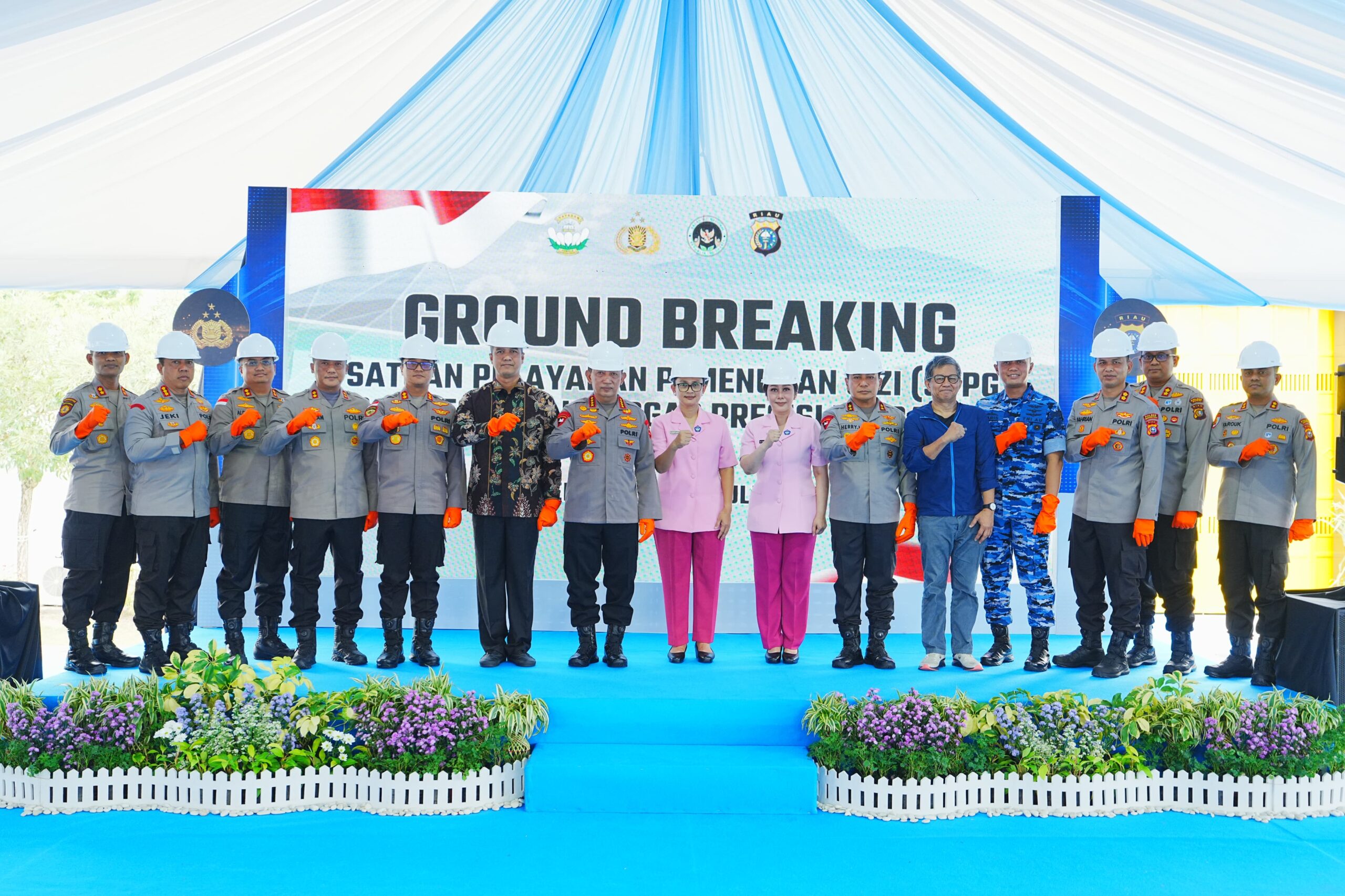 BHARINDO RIAU,- Kapolri Jenderal Listyo Sigit Prabowo menghadiri kegiatan Groundbreaking sembilan dapur Satuan Pelayanan Pemenuhan Gizi (SPPG) Polda Riau, Minggu (13/7/2025).
