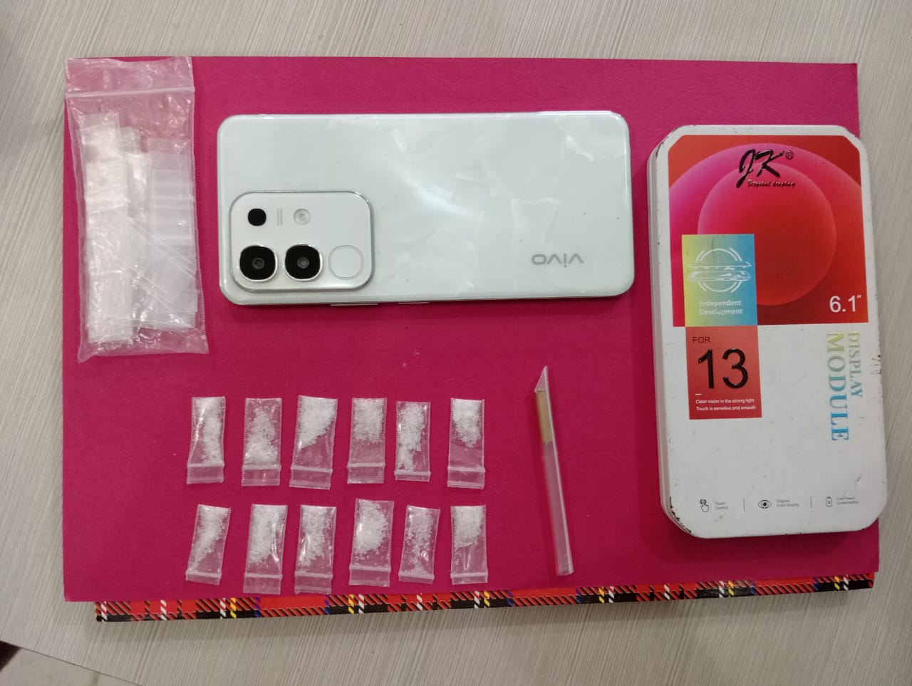 Dari tangan pelaku, petugas berhasil mengamankan 12 paket plastik klip berisi narkotika jenis sabu dengan berat 2,29 gram, satu unit handphone, satu kotak kaleng, satu bungkus plastik klip berisi plastik kosong, serta pipet plastik berbentuk sekop yang diduga digunakan untuk menakar sabu.