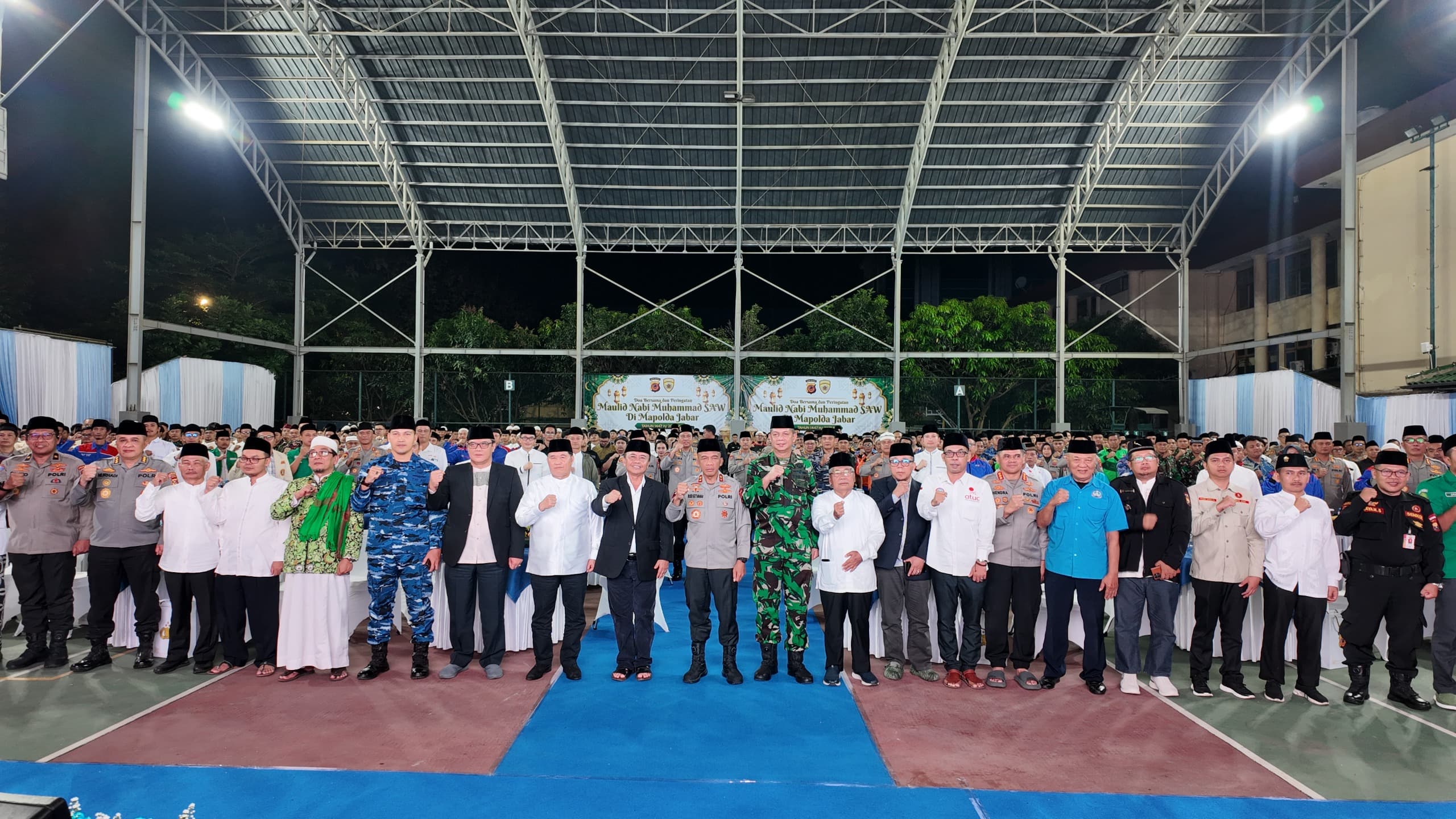 Bharindo Bandung,– Suasana khidmat menyelimuti Markas Polda Jawa Barat pada Minggu (7/9/2025) malam. Ratusan peserta dari unsur TNI, Polri, Forkopimda, tokoh agama, tokoh masyarakat, komunitas ojek online, hingga elemen masyarakat lainnya berkumpul dalam doa bersama memperingati Maulid Nabi Muhammad SAW 1447 H.
