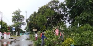 Pada saat terjadinya hujan lebat yang disertai angin kencang mengakibatkan pohon tumbang tersebut hingga menutup sebagian badan jalan sehingga Babinsa dan warga langsung berusaha membersihkan batang dan ranting pohon menggunakan peralatan seadanya.