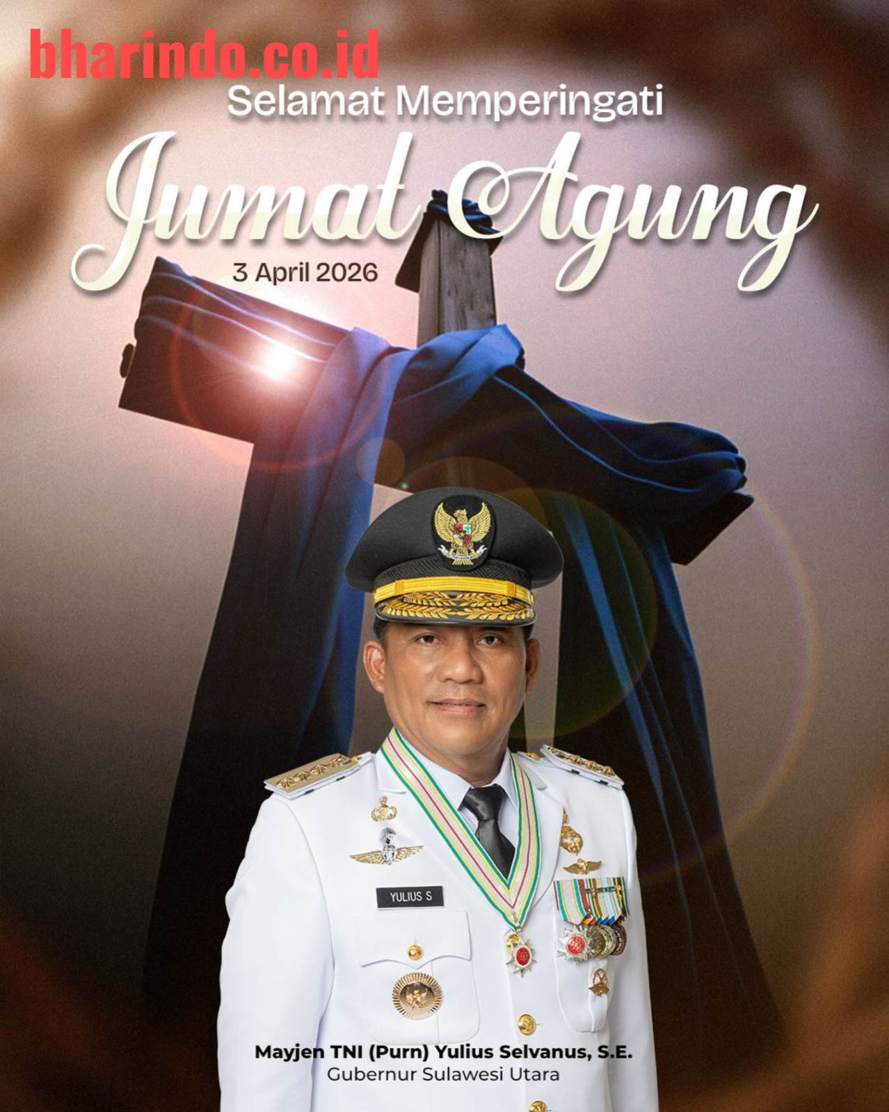Manado, bharindo.co.id – Peringatan Jumat Agung tahun ini dimaknai Gubernur Sulawesi Utara, Mayjen TNI (Purn) Yulius Stevanus, sebagai momentum refleksi bersama atas nilai pengorbanan, kasih, dan pengampunan dalam kehidupan sosial.