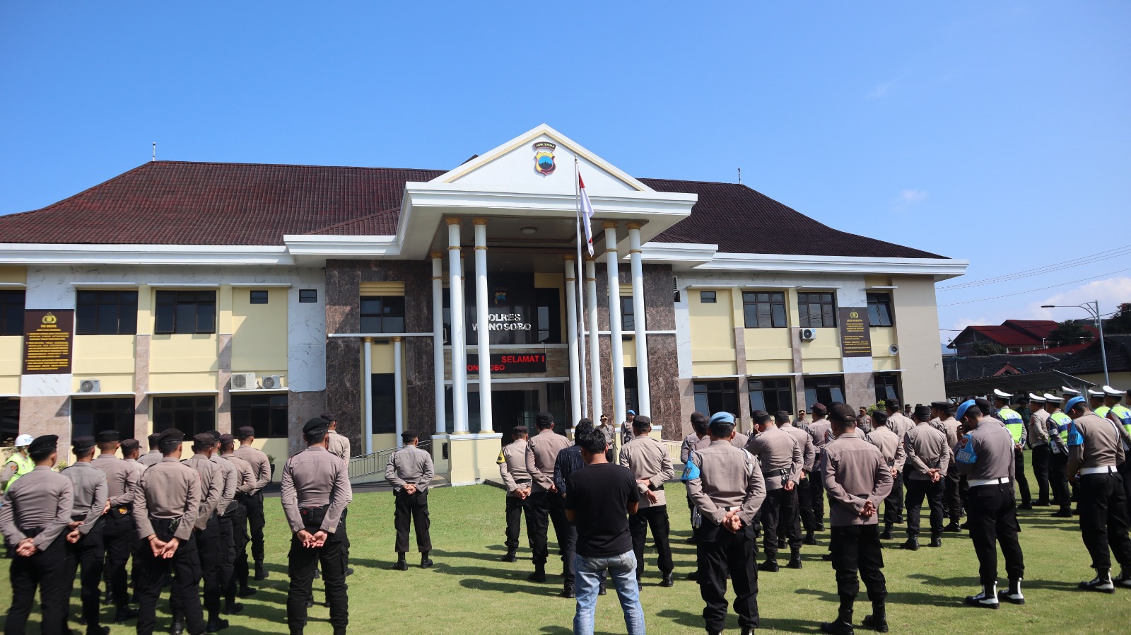 Bharindo Wonosobo,- Menyambut libur panjang akhir pekan ini, Polres Wonosobo mengerahkan 175 personel untuk mengantisipasi lonjakan aktivitas masyarakat, terutama di kawasan wisata. Apel gelar pasukan dipimpin langsung oleh Kapolres Wonosobo AKBP M. Kasim Akbar Bantilan, S.I.K., M.M., pada Sabtu pagi, 10 Mei 2025, di halaman Mapolres Wonosobo.