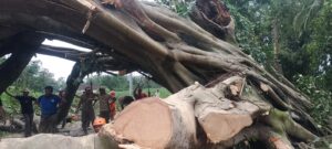 Peristiwa terjadi sekitar pukul 14.10 hingga 15.30 WIB, ketika intensitas hujan cukup tinggi disertai angin kencang. Pohon dengan diameter sekitar 13 meter dan memiliki sekitar 15 ranting besar berdiameter 1,5 meter tumbang melintang di jalan desa.