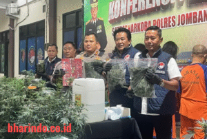 bharindo.co.id Jombang,- Polres Jombang menangkap pasangan suami istri yang diduga menjadi penyandang dana Rp 6 miliar untuk mengubah rumah kontrakan di Desa Mojongapit menjadi kebun ganja modern.