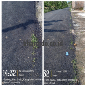 bharindo.co.id Jombang,- Proyek pembangunan jalan lingkungan di Dusun Karanglo Desa Godong Kecamatan Gudo, Kabupaten Jombang, menuai sorotan tajam dari warga dan aktivis pengawas anggaran.