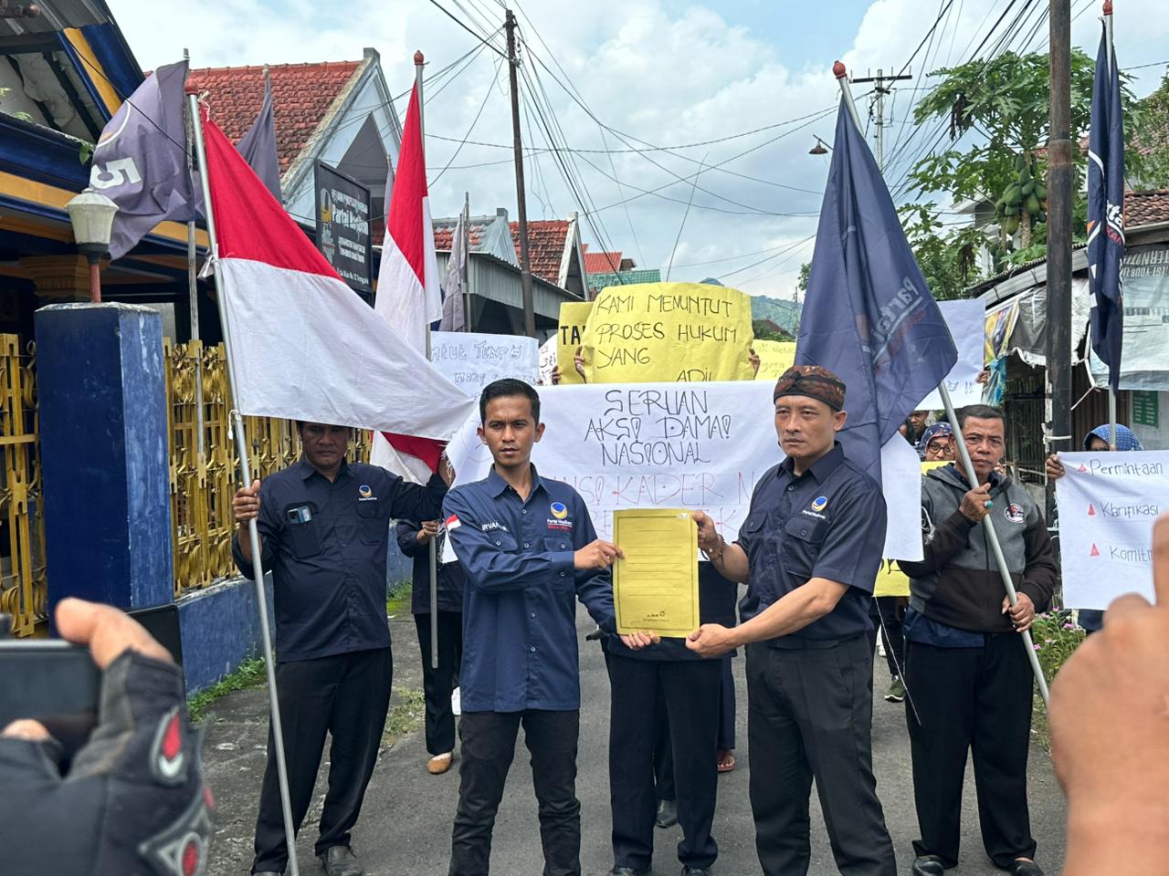 Trenggalek, bharindo.co.id – kader partai nadem kabupaten Trenggalek menggelar aksi damai di depan kantor DPD terkait berita majalah Tempo, rabu (15 /04 /2026).