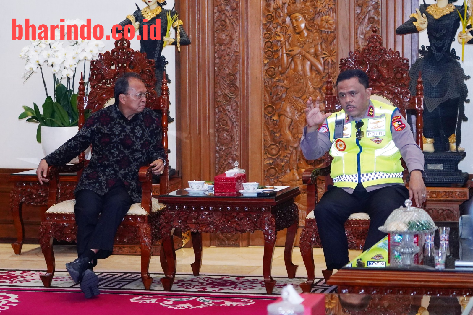“Saya mengucapkan terima kasih kepada Bapak Kakorlantas yang melakukan audiensi untuk menyampaikan beberapa rencana kegiatan, mulai dari Operasi Ketupat Lebaran, kegiatan Kemala Run, hingga pengamanan Hari Raya Nyepi,” ujar Koster.
