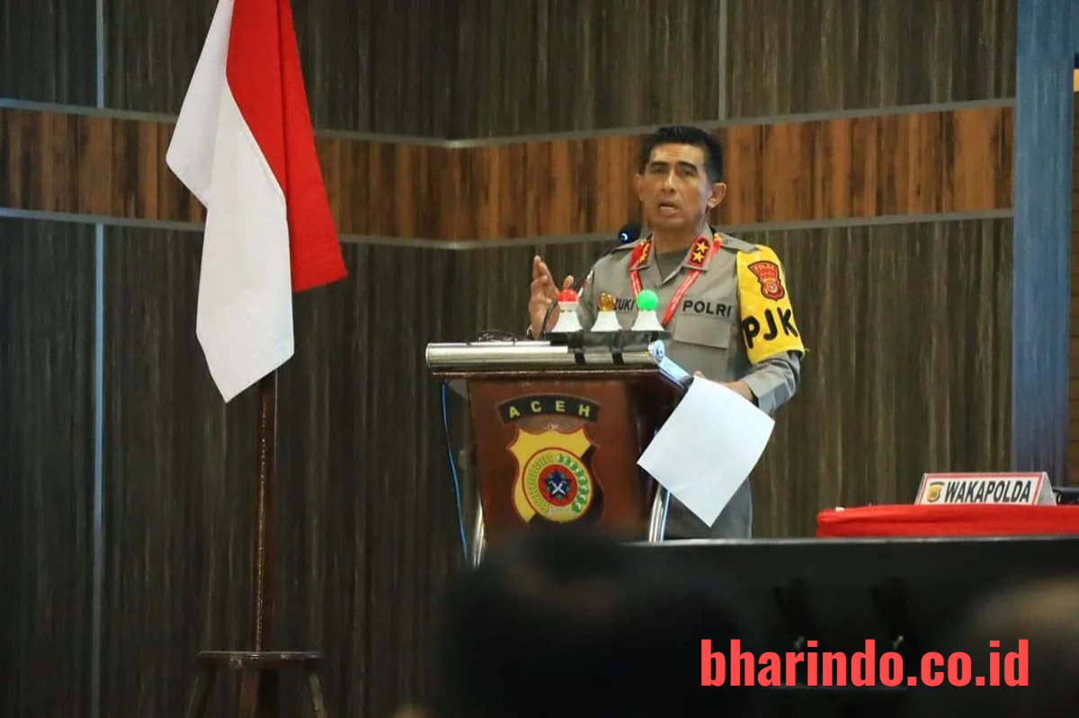 bharindo.co.id BANDA ACEH,— Kepala Kepolisian Daerah Aceh Irjen Pol. Marzuki Ali Basyah menegaskan bahwa pelayanan kepolisian kepada masyarakat tidak boleh berhenti dalam kondisi apa pun, termasuk ketika terjadi bencana alam. Penegasan tersebut disampaikan Kapolda saat membuka Gelar Operasional (GO) Semester II Polda Aceh Tahun 2025 di Gedung Presisi Polda Aceh.