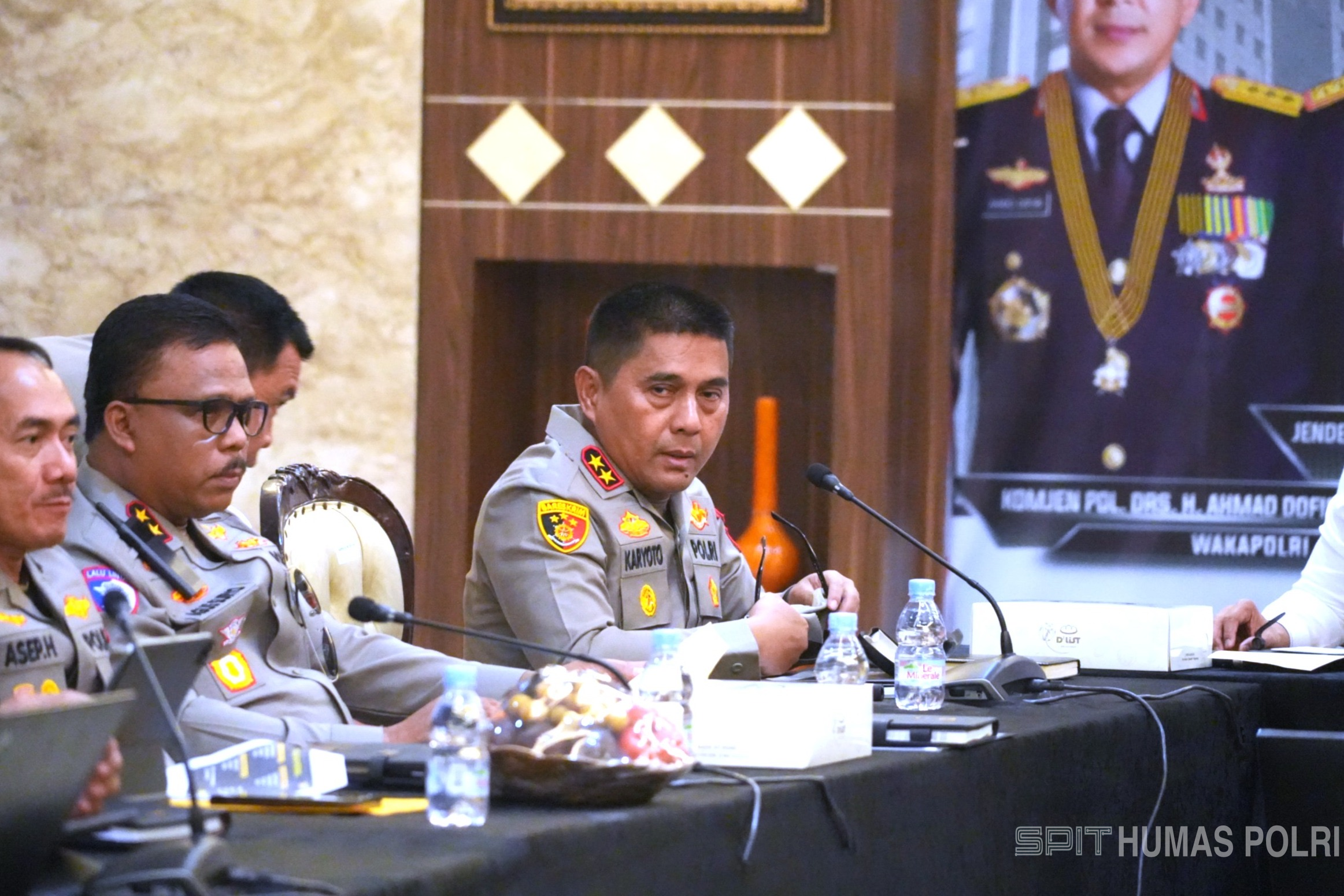 Rapat koordinasi ini digelar di Aula Gedung Promoter, Polda Metro Jaya, Jakarta Selatan, Senin (28/4/2025). Rapat koordinasi ini turut dihadiri jajaran pejabat utama Mabes Polri dan pemerintah daerah.