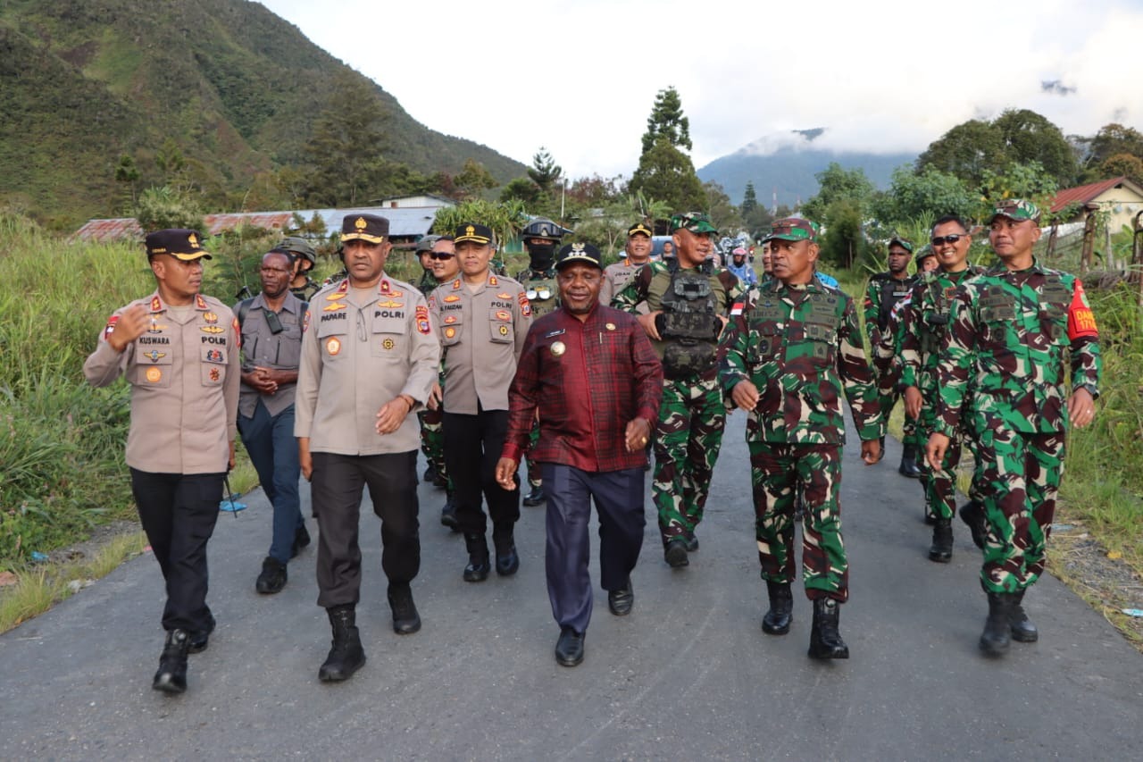 Kapolda Papua Tengah Brigjen Pol. Alfred Papare, S.I.K saat dikonfirmasi mengatakan bahwa sore ini kami bersama Bapak Danrem 173/PVB, PJ. Bupati, Kapolres dan Dandim melaksanakan kegiatan patroli jalan kaki sekaligus meninjau beberapa titik lokasi yang nantinya akan diisi oleh personel gabungan TNI-POLRI.