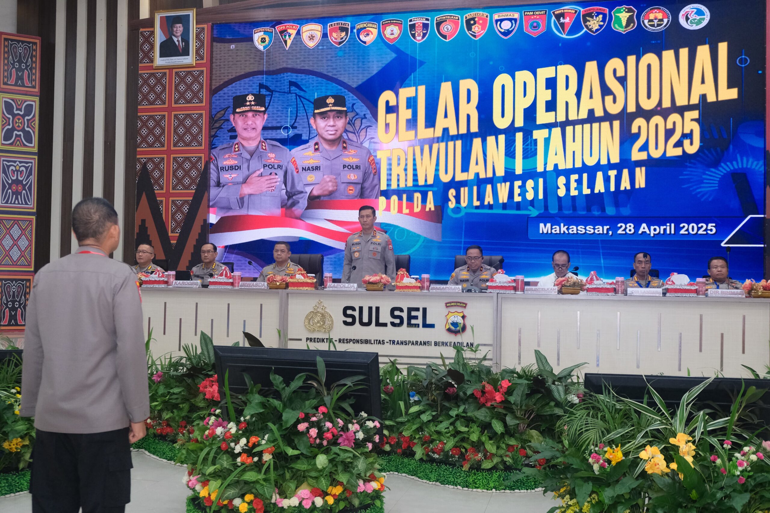 Bharindo SULSEL,- Kapolda Sulawesi Selatan, Irjen Pol. Drs. Rusdi Hartono, M.Si., memimpin Apel Gelar Operasional Triwulan I Tahun 2025 Polda Sulawesi Selatan di Aula Mappaoddang Mapolda Sulawesi Selatan Senin 28/04/2025.