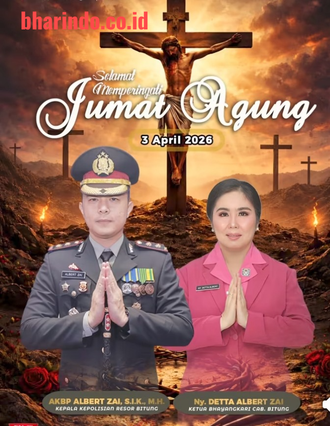 Bitung, bharindo.co.id – Dalam rangka memperingati Jumat Agung, Kepala Kepolisian Resor Bitung AKBP Albert Zai S.I.K., M.H. beserta jajaran staf dan Bhayangkari menyampaikan ucapan selamat kepada seluruh umat Kristiani yang menjalankan ibadah.