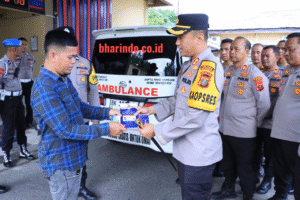 Bharindo.co.id Labuhanbatu,– Kapolres Labuhanbatu AKBP Wahyu Endrajaya, S.I.K., M.Si., memberikan reward kepada Aiptu Ihsan atas dedikasinya menyediakan layanan ambulans gratis bagi masyarakat. Kegiatan tersebut dilaksanakan sekitar pukul 09.00 WIB di halaman depan Mapolres Labuhanbatu, Jalan MH Thamrin, Rantauprapat, Labuhanbatu, Provinsi Sumatra Utara, Jum’at (6/2/2026).