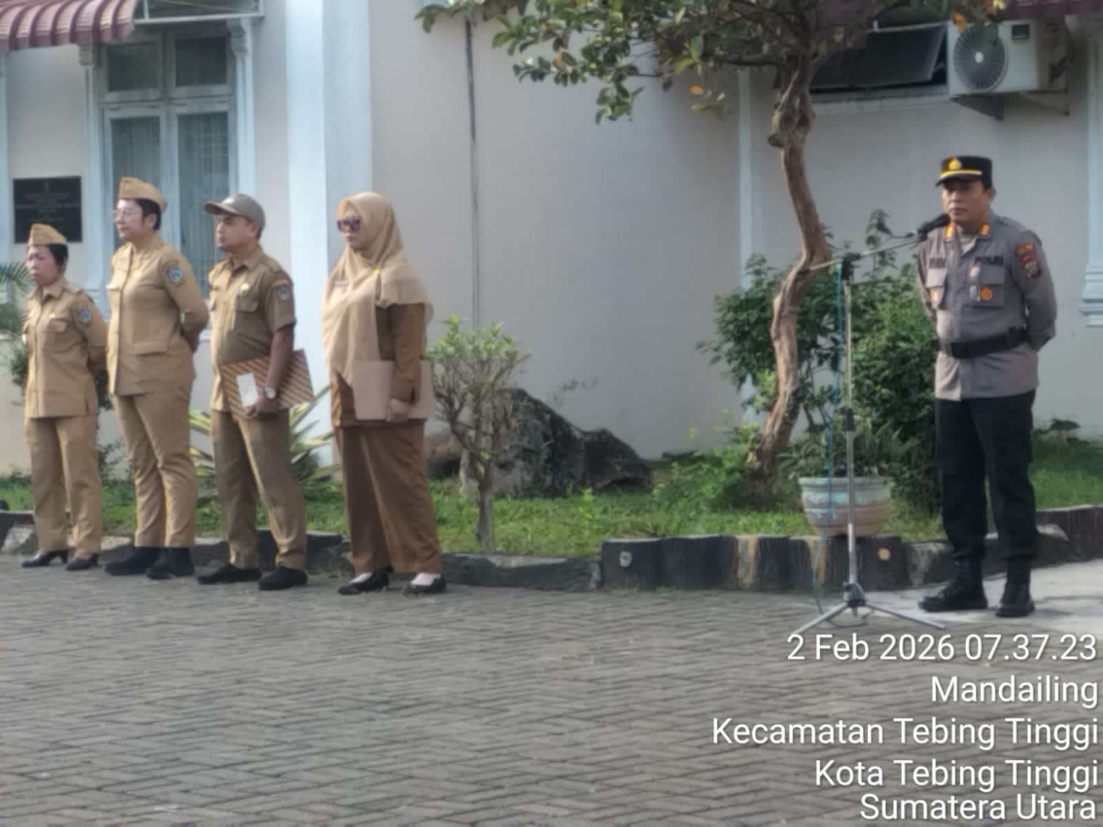 bharindo.co.id Tebing Tinggi,- Kapolsek Padang Hulu Polres Tebing Tinggi AKP Rudi Asman, SH memimpin kegiatan apel pagi gabungan dengan bertindak sebagai pembina upacara di halaman apel Kantor Camat Tebing Tinggi Kota, Jalan Thamrin, Kota Tebing Tinggi, Senin (2/2/2026).