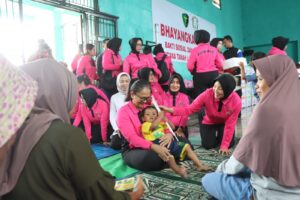 Bharindo.co.id Banjarnegara,- Suasana haru mewarnai lokasi pengungsian korban tanah longsor di Kecamatan Pandanarum, Kabupaten Banjarnegara, Minggu (23/11/2025). Ketua Umum Bhayangkari, Ibu Juliati Sigit Prabowo, hadir langsung untuk menyalurkan bantuan dalam kegiatan Bhayangkari Peduli Bhakti Sosial dan Bhakti Kesehatan Bencana Tanah Longsor Banjarnegara. Kehadirannya didampingi Ketua Bhayangkari Daerah Jawa Tengah, Ibu Diana Ribut Hari Wibowo, beserta jajaran pengurus.