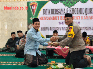 bharindo.co.id Kediri,- 16 Februari 2026 – Suasana religius dan penuh kekhusyukan menyelimuti Masjid Asy-Syuhada Kompi 1 Batalyon C Pelopor Satbrimob Polda Jatim, Senin (16/2/2026). Dalam rangka menyambut Bulan Suci Ramadhan 1447 H / 2026 M, Anggota beserta Bhayangkari Kompi 1 Batalyon C Pelopor Satbrimob Polda Jatim menggelar kegiatan Doa Bersama dan Khotmil Qur’an (Megengan Dalka).