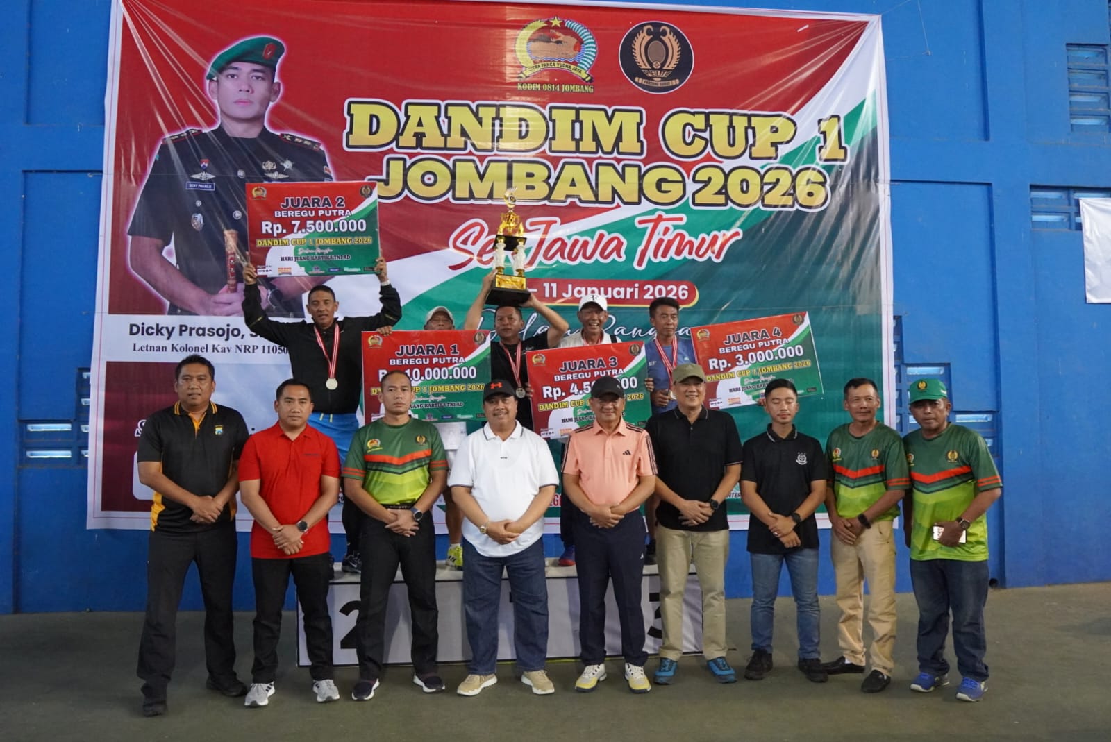 bharindo.co.id Jombang,– Kodim 0814/Jombang resmi menutup Turnamen Tenis Lapangan Piala Dandim Cup I Tahun 2026 dalam upacara penutupan yang digelar di Lapangan Tenis Indoor Jalan Kusuma Bangsa, Desa Sengon, Kecamatan Jombang, Kabupaten Jombang, Minggu (11/01/2026).