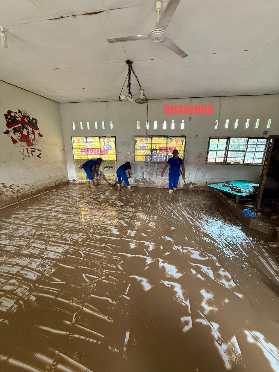 Kegiatan yang berlangsung sejak pukul 08.00 WIB hingga 16.00 WIB tersebut difokuskan pada pembersihan lumpur dan sampah yang menutupi ruang kelas, halaman sekolah, serta sejumlah fasilitas penunjang lainnya. Upaya ini dilakukan agar proses belajar mengajar dapat segera kembali berjalan normal.