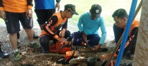 Rangkaian pelatihan meliputi simulasi evakuasi korban tenggelam, pelatihan penggunaan gergaji mesin, serta teknik menebang pohon tumbang secara aman. Materi ini diberikan agar seluruh personel memahami prosedur kerja yang tepat guna menghindari kecelakaan kerja di lapangan.