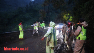 bharindo.co.id Wonosobo,– Hujan yang mengguyur kawasan pegunungan Dieng kembali menguji kesiapsiagaan aparat dan petugas terkait. Anggota kepolisian yang tengah melaksanakan Operasi Lilin Candi 2025 melaporkan terjadinya tanah longsor yang menutup sebagian ruas Jalan Wonosobo–Dieng, Kamis (25/12/2025).