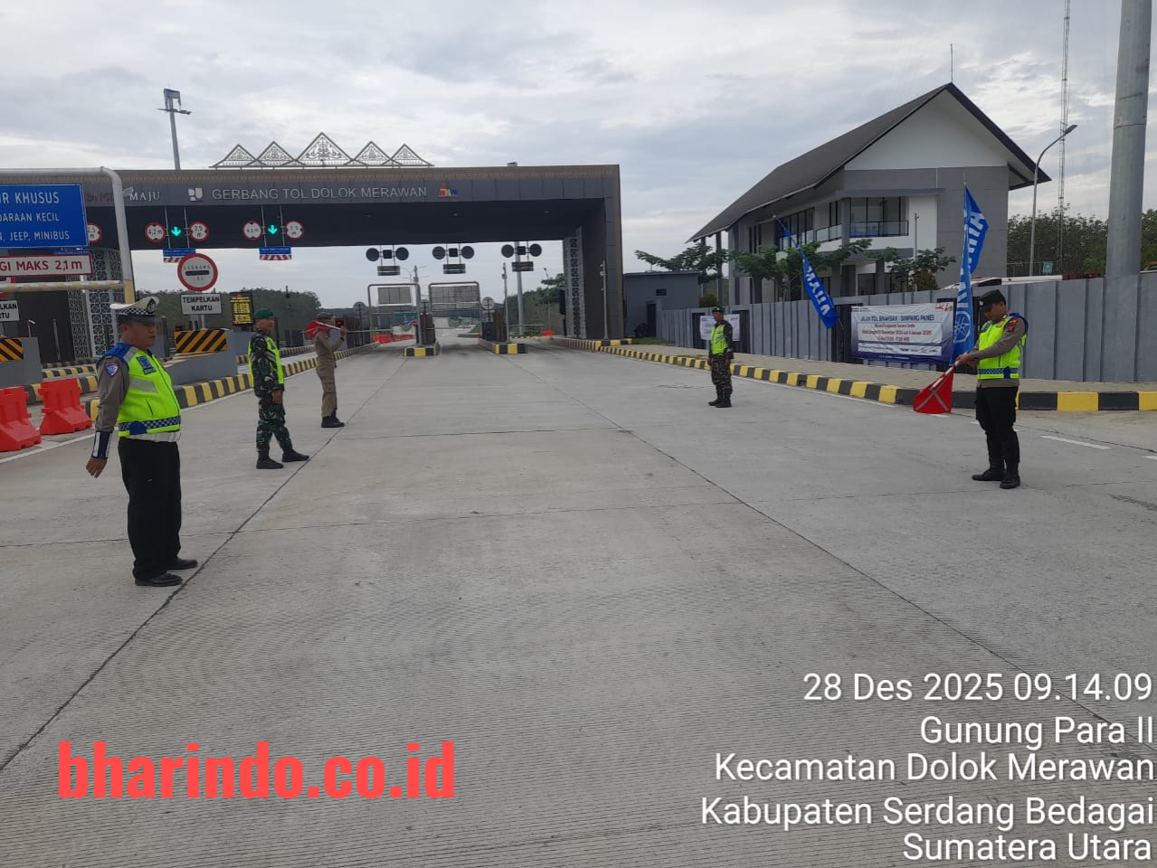 bharindo.co.id Tebing Tinggi,- Dalam rangka Operasi Lilin Toba 2025, Pos Pelayanan (Yan) Pintu Tol Dolok Merawan Polres Tebing Tinggi melaksanakan pengaturan dan pemantauan intensif melalui live report terhadap situasi arus lalu lintas di sekitar pos, Minggu (28/12/2025).