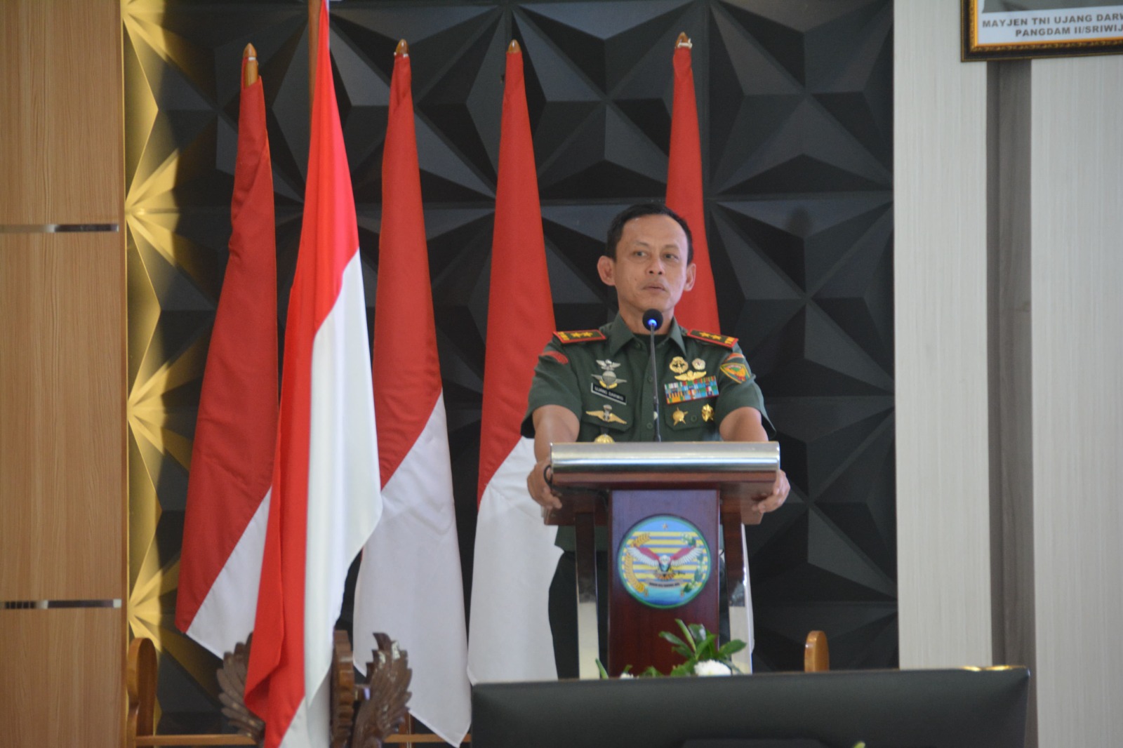 Bharindo, kepulauan Bangka Belitung.Pangkal pinang– Panglima Kodam II/Sriwijaya Mayjen TNI Ujang Darwis, M.D.A dan Ibu Ketua Persit KCK Daerah II/Swj Ny. Desi Ujang Darwis beserta rombongan melaksanakan kunjungan kerja ke Makorem 045/Garuda Jaya, di Kelurahan Air Itam Kecamatan Bukit Intan Pangkalpinang, Senin (21/04/2025)