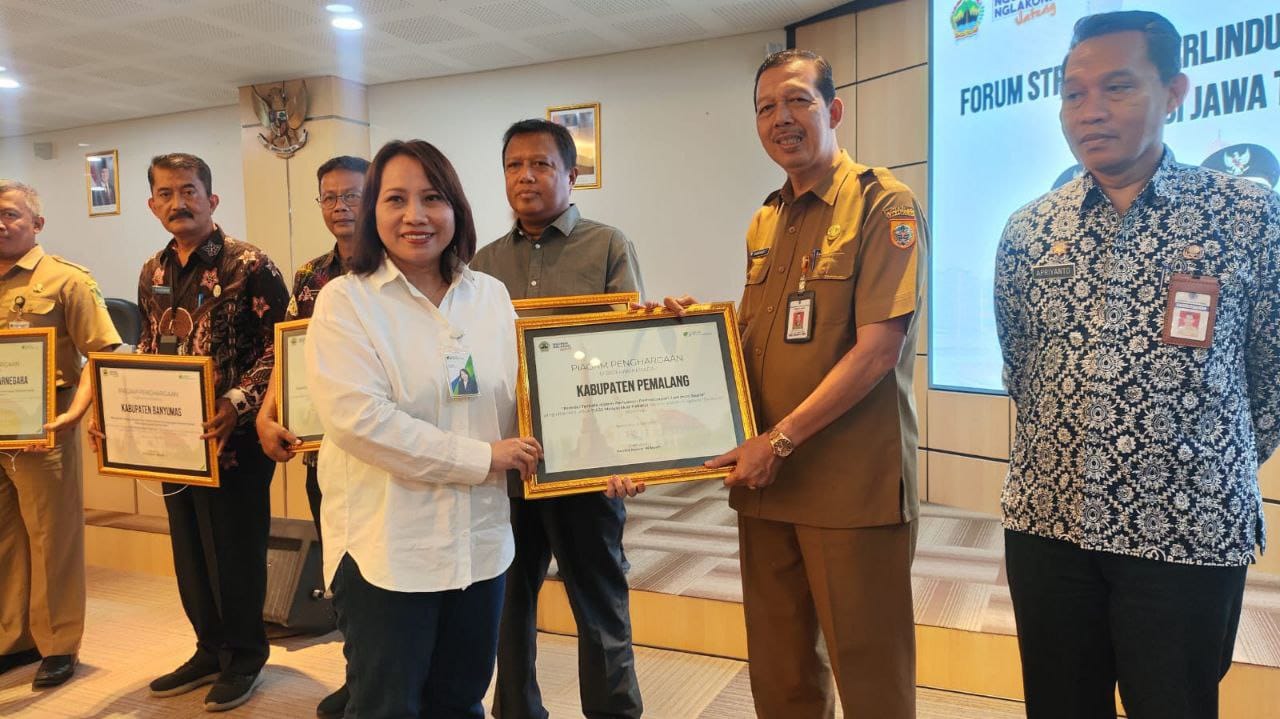 Bharindo, Pemalang Jateng – Pemerintah Kabupaten Pemalang baru-baru ini memperoleh penghargaan “Inovasi terbaik dalam Perluasan Perlindungan Jaminan Sosial” yang diberikan untuk 11.635 masyarakat melalui Alokasi Anggaran Santunan Kematian. Penghargaan tersebut diberikan dalam kegiatan “Forum Strategis Perlindungan Sosial Ketenagakerjaan” yang diselenggarakan oleh Provinsi Jawa Tengah di Gedung BKAD Semarang.
