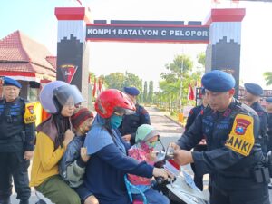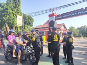 Bharindo Jatim,- dalam rangka memeriahkan peringatan HUT RI ke 80 kompi 1 BATALYON C PELOPOR SATBRIMOB POLDA JATIM yang beralamat kan di jalan veteran kec.mojoroto Kel.sukorame kota kediri mengadakan pembagian dan pemasangan bendera merah putih kepada pengendara bermotor yang melintasi jalan setempat.