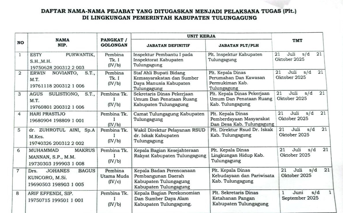 Bharindo Tulungagung,- 22 Juli 2025 Ketua Aliansi Pelita, Bogi Winarno, menyampaikan kritik keras terkait penunjukan sejumlah pejabat Pelaksana Tugas (PLT) oleh Bupati Tulungagung pada tanggal 21 Juli 2025 di Pendopo Kabupaten. Dalam pernyataannya kepada media Bharindo di kediamannya di Panglima Sudirman Regency Kav. 22, Tulungagung, ia menilai langkah tersebut sangat kontradiktif, tidak relevan, serta terkesan dipaksakan.