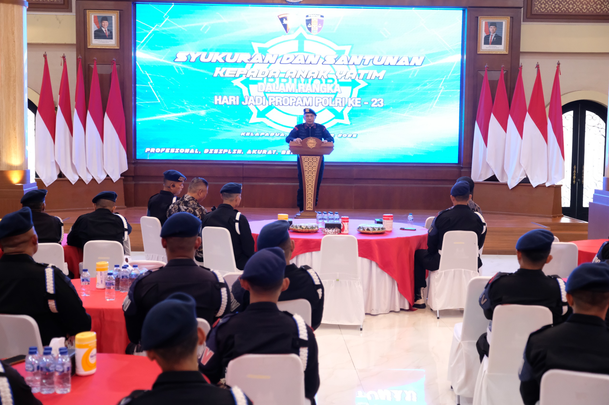 Rangkaian kegiatan diawali dengan pembukaan oleh pembawa acara, dilanjutkan dengan doa bersama sebagai ungkapan rasa syukur atas perjalanan panjang Propam Polri dalam menjaga marwah dan etika profesi kepolisian.