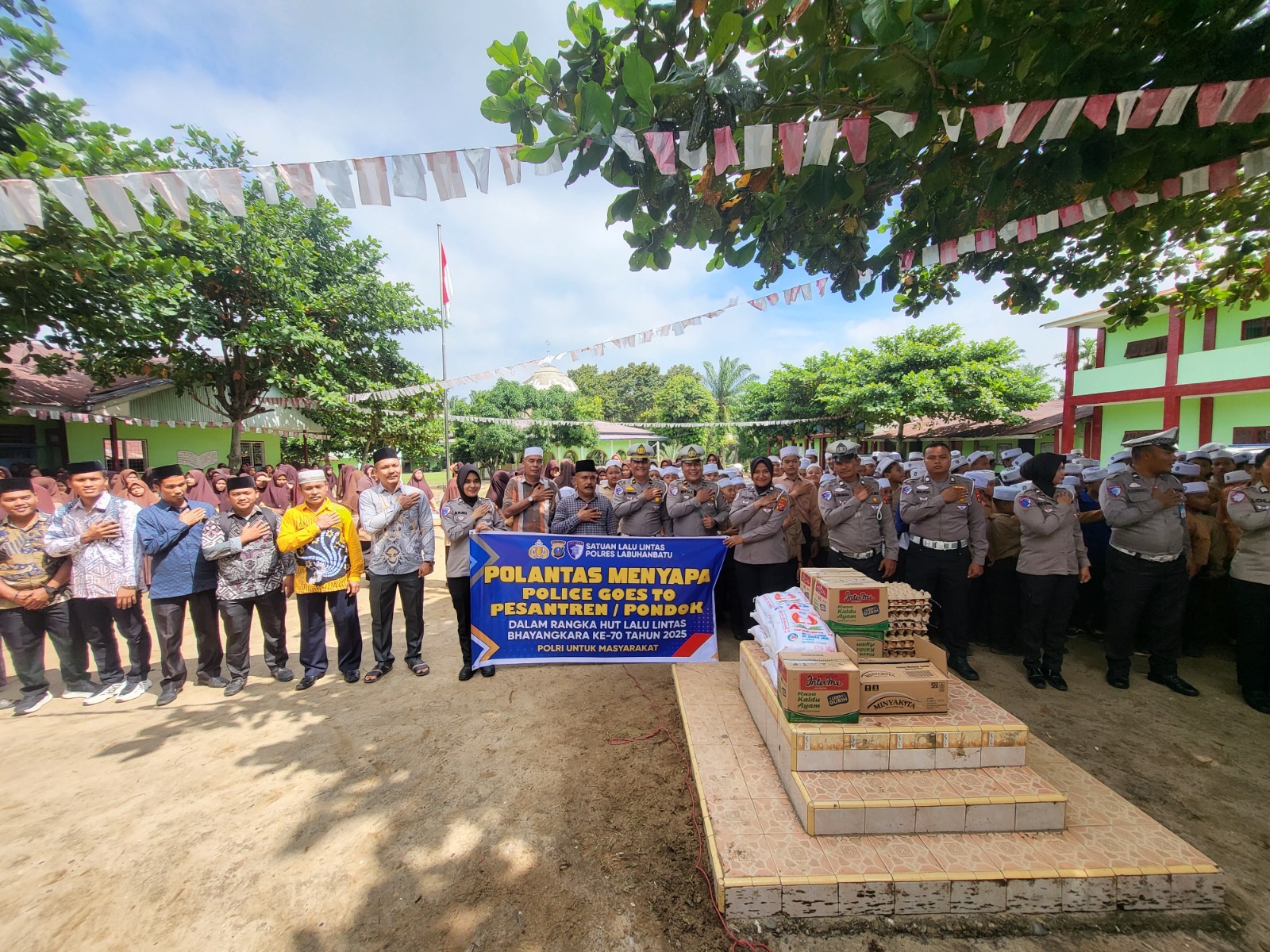 Bharindo, Labuhanbatu – Dalam rangka menyambut Hari Ulang Tahun Lalu Lintas Bhayangkara ke-70 Tahun 2025, Satuan Lalu Lintas Polres Labuhanbatu yang dipimpin IPTU M. Rizal, menggelar kegiatan Polantas Menyapa Goes to Pondok Pesantren Amiruddiniyah, Jalan Purbasari, Desa Bandar Tinggi, Kecamatan Bilah Hulu Kabupaten Labuhanbatu Provinsi Sumatera utara, Jum’at (12/9/2025).