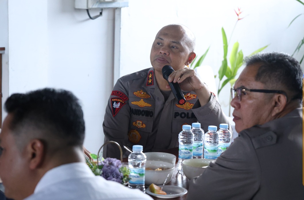 Bharindo Babel,- Kapolda Babel, Irjen Pol. Drs. Hendro Pandowo, M.Si., didampingi para pejabat utama Polda Babel dalam kegiatan coffee morning yang digelar di Parkiran Satuan PJR Direktorat Lalu Lintas Polda Babel, Senin, (4/8/25).