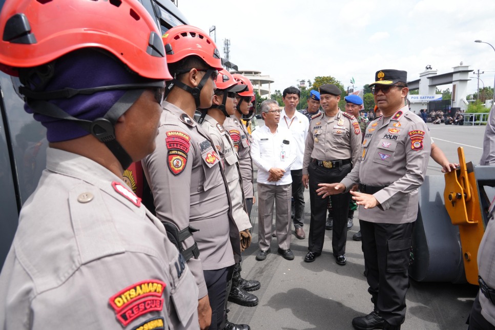 Usai apel, Wakapolda DIY bersama Forkopimda melakukan pengecekan langsung terhadap kesiapan personel, sarana, dan prasarana yang akan digunakan dalam penanggulangan bencana di wilayah Yogyakarta.